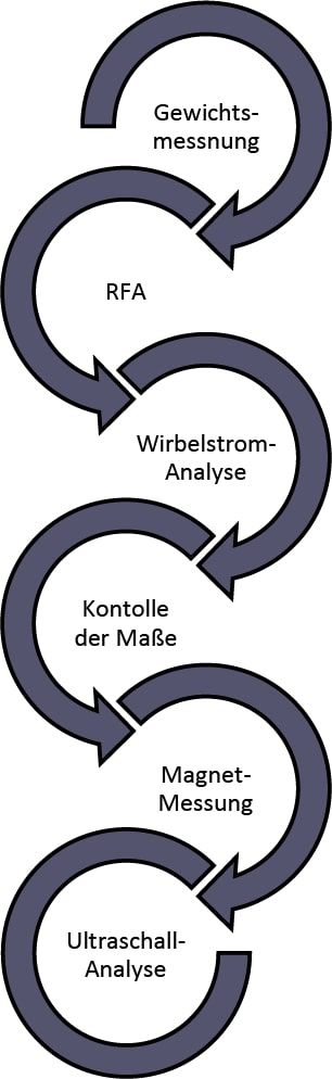 Nebenstehend finden Sie den beispielhaften Ablauf einer Analyse, wenn Sie Münzen oder Barren an uns veräußern möchten.